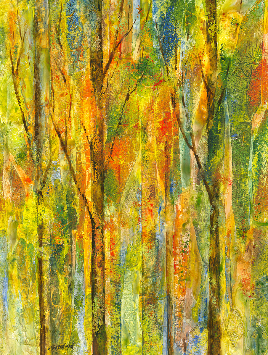 - Fall forest with vibrant autumn colors, delicate, rich textures