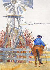 - A cowboy swinging his rope getting ready to lasso a calf for branding.