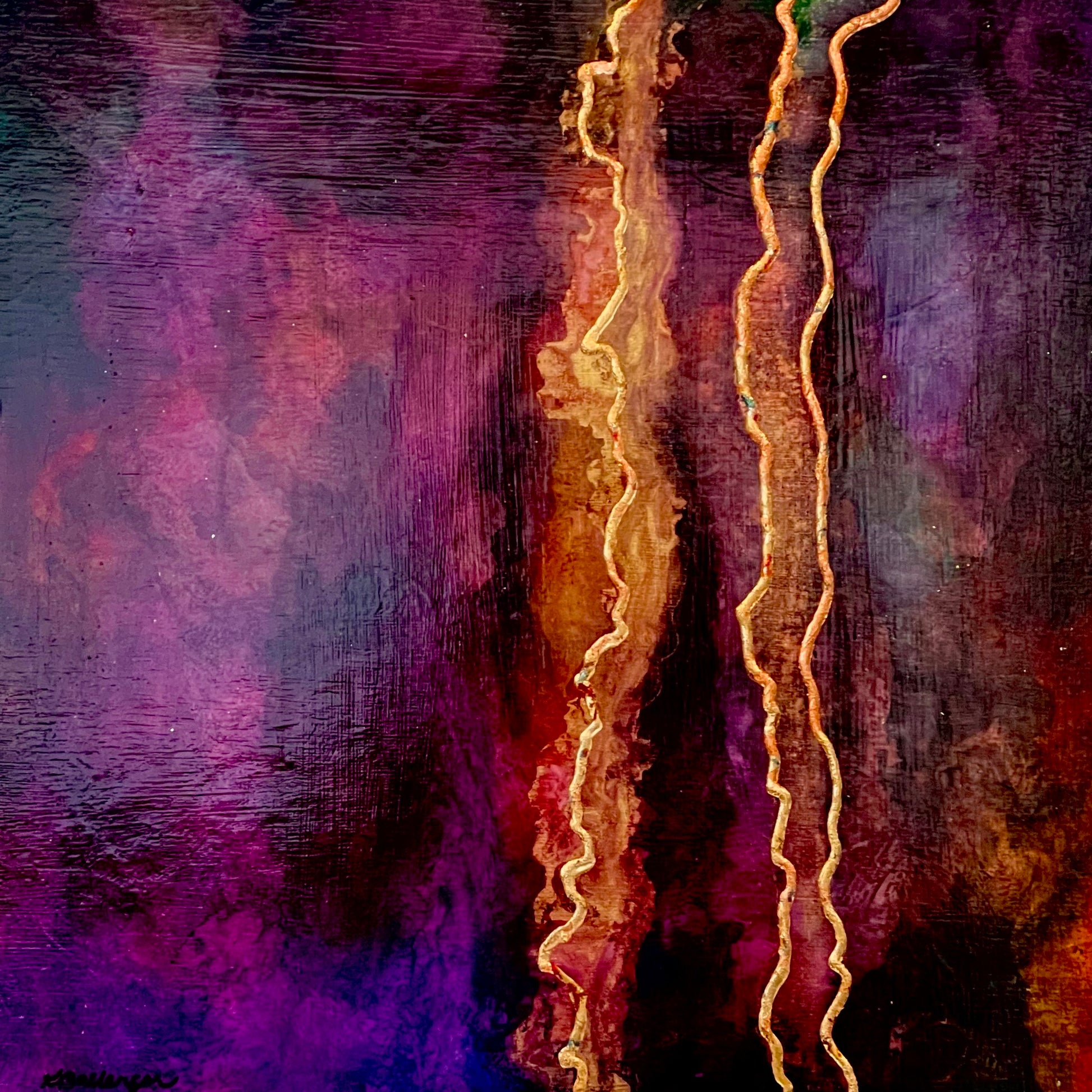 - 12 x12" Cradled birch panel, antique gold floater frame, ready to hang