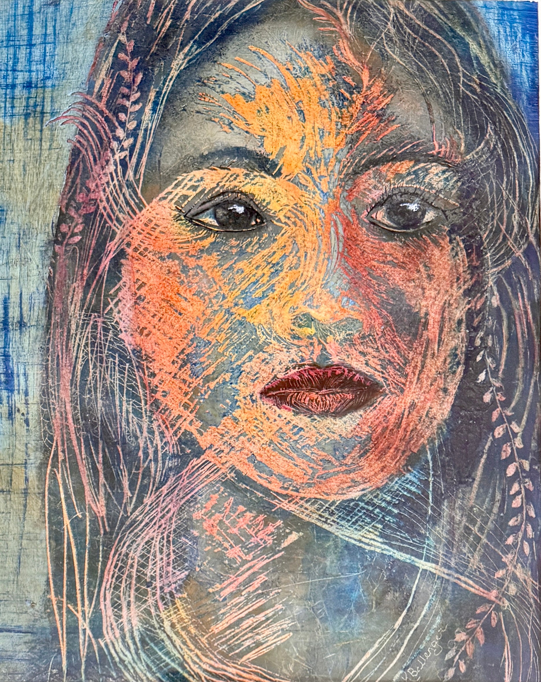 - 14x18 matted and framed portrait, cold wax medium and oil, ready to hang