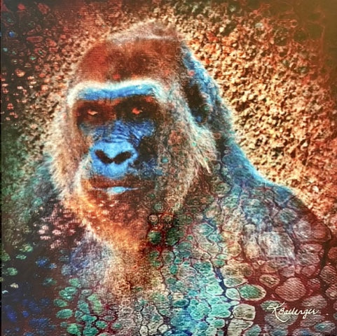 - 16x16 metal print, framed to 22x22, Layered with original acrylic, “Dragon’s Breath”