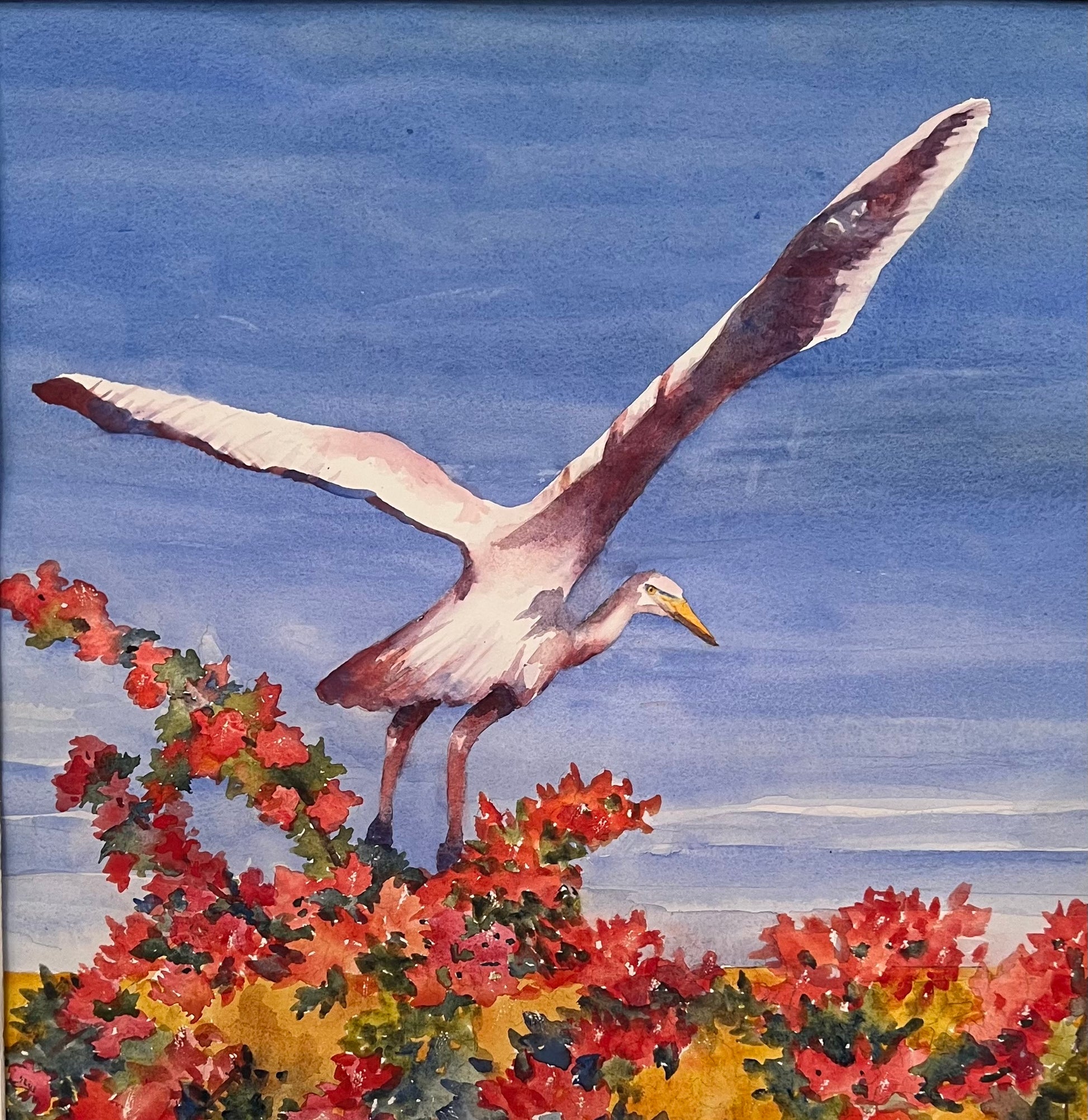 - Egret taking off a fence