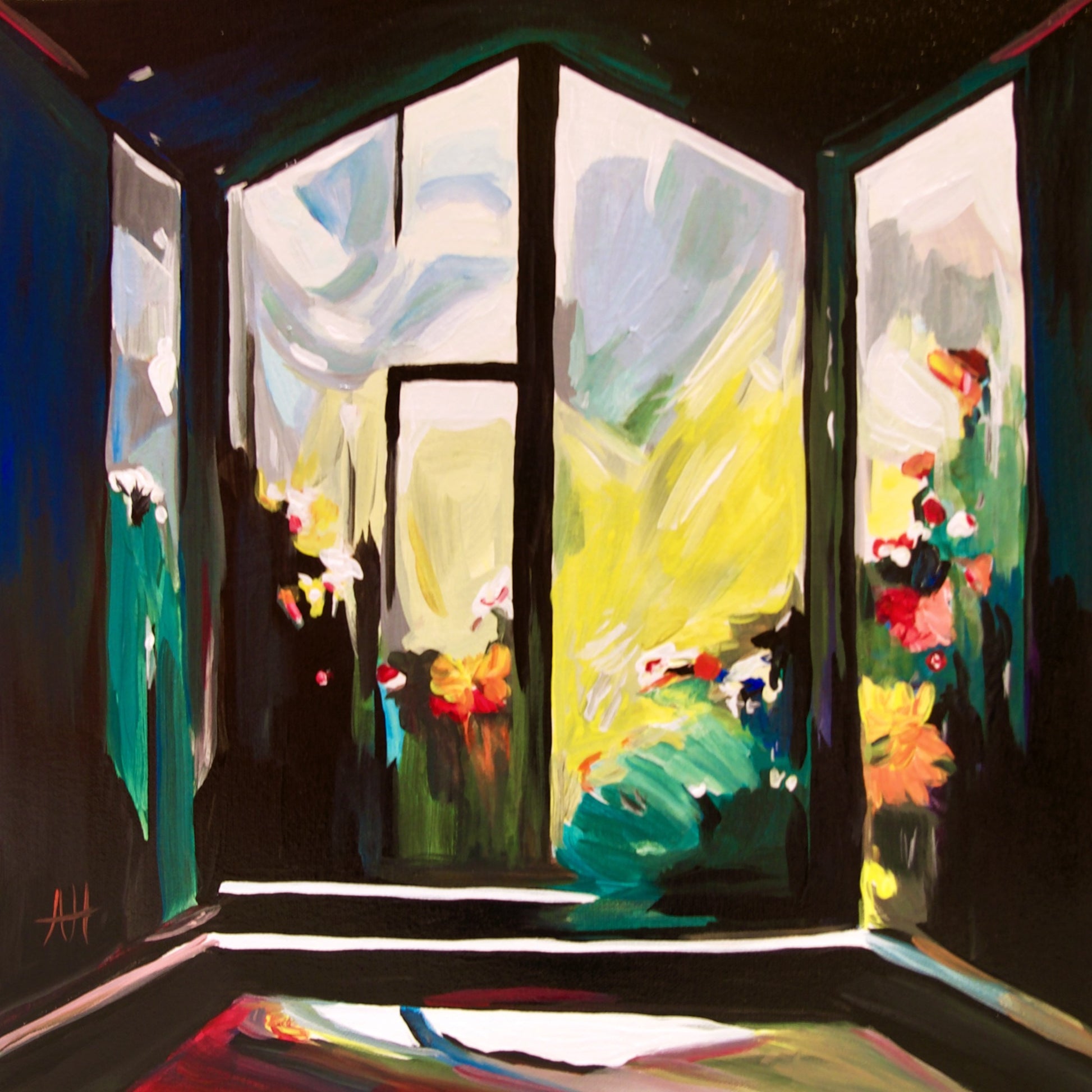 - Living Light Acrylic on canvas | 16" x 16" x 1-1/2" | Floating frame Radiant and contemplative, Living Light explores the interplay between inner vitality and quiet stillness. Part of my Interiors series, this 16" x 16" acrylic painting weaves translucent layers of warm golds, soft whites, and gentle earth tones to evoke a sense of energy that glows from within. Subtle forms and flowing lines suggest a presence emerging—an essence more than a figure—illuminated by the quiet power of awareness and breath. Framed in a floating frame, this piece offers a serene invitation to reconnect with your own light, gently pulsing beneath the surface of daily life.
