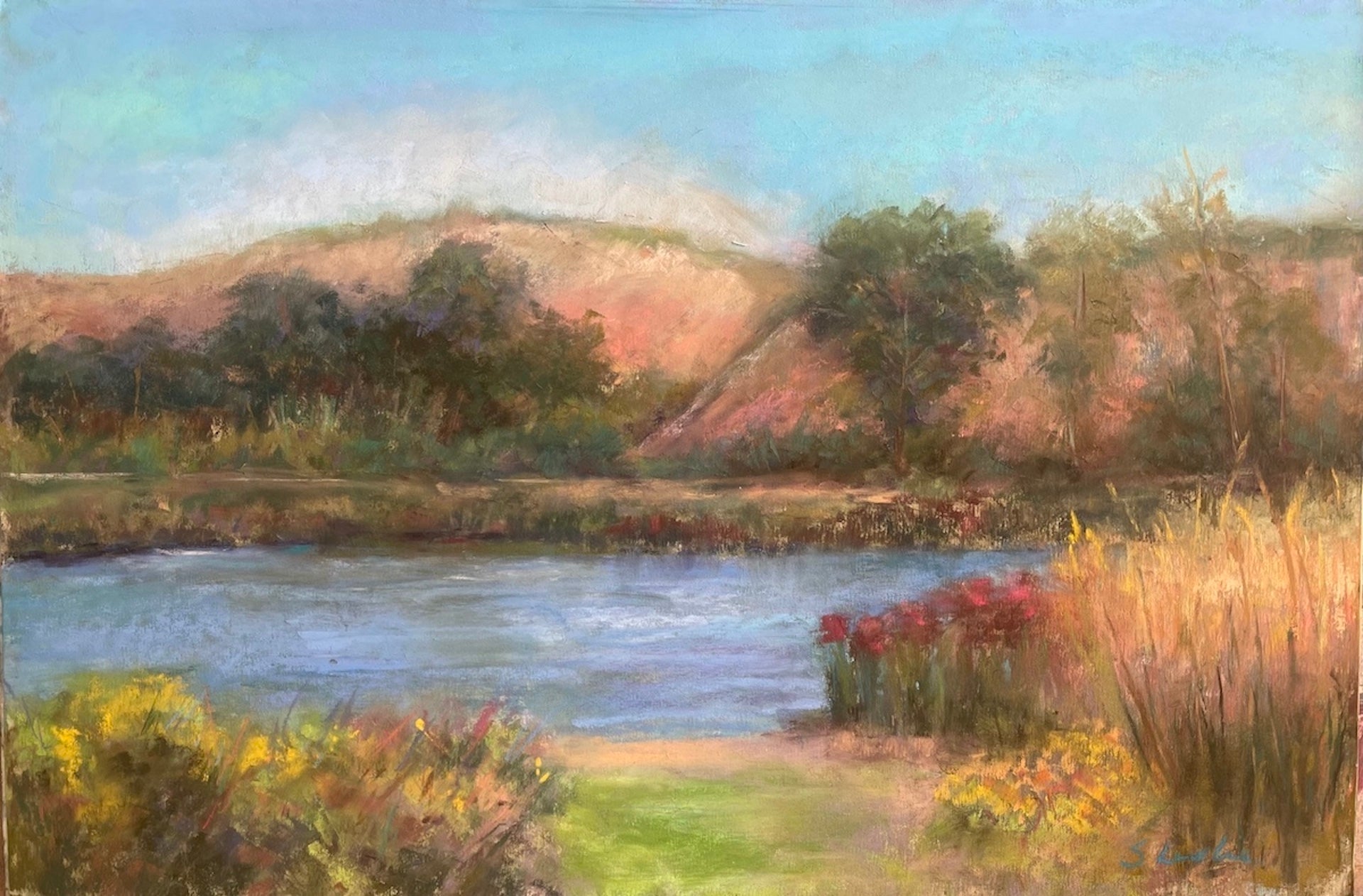 - 12x16. Museum glass with darkish wooden frame. From reference photo from Carneros Park, Goleta, Ca