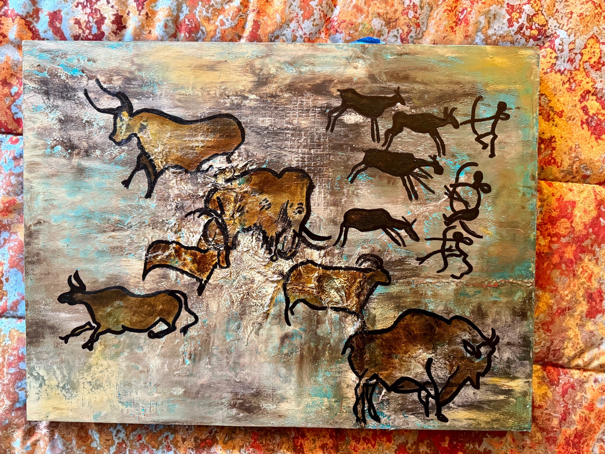 - Actual reproduction on textured surface of prehistoric cave art in the Dordogne Region of France, ready to hang, Part of Cave Art Series