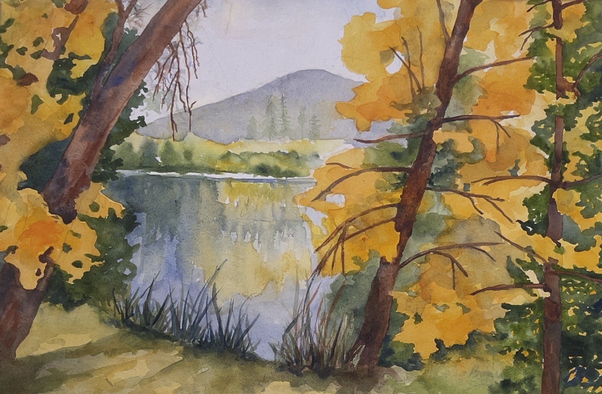 - 20" x @7" A peaceful scene overlooking a lake and mountain.