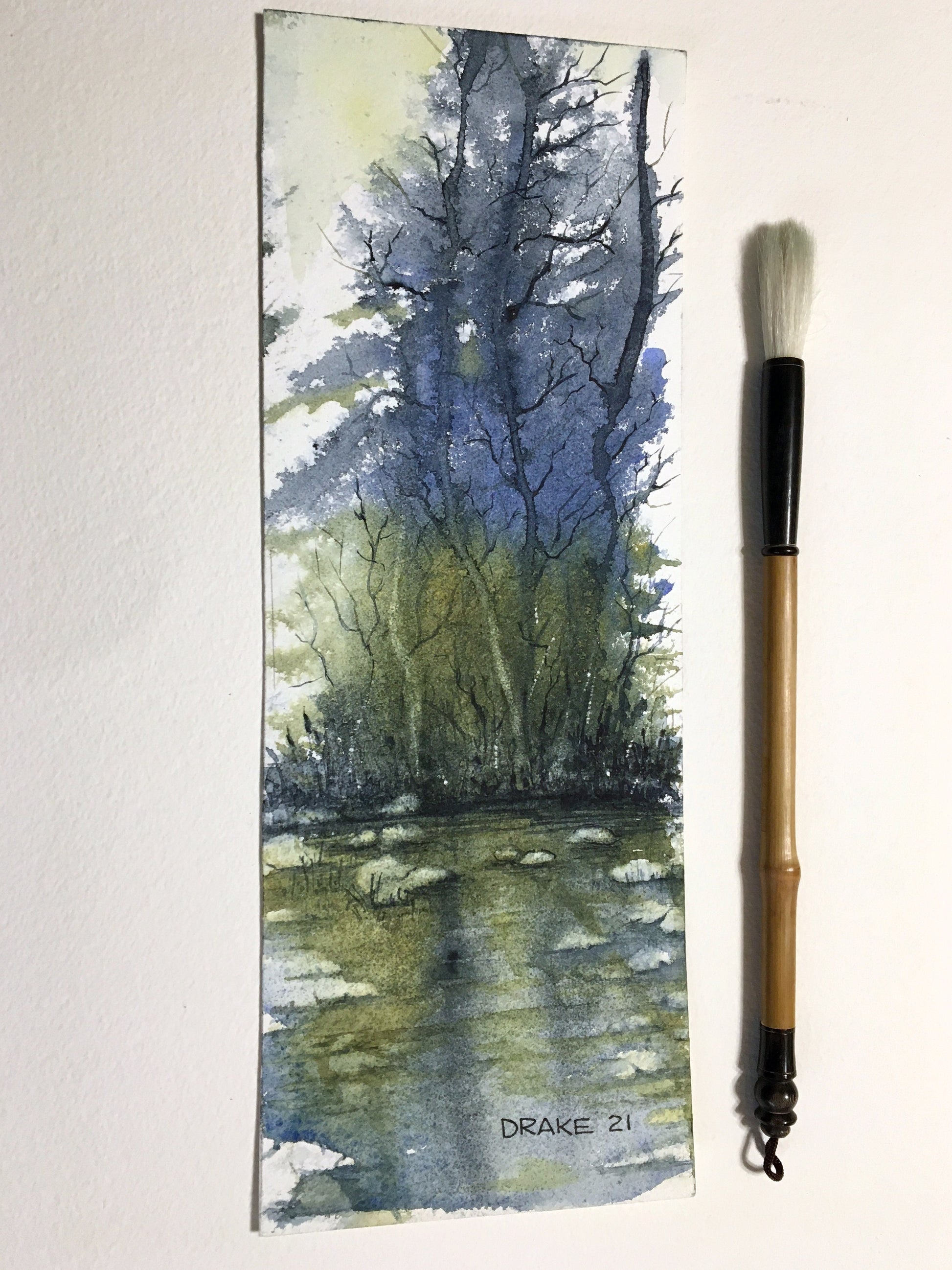 - 4 1/2 x 12 pouring color, lifting rocks, from my imagination, no sketch was done