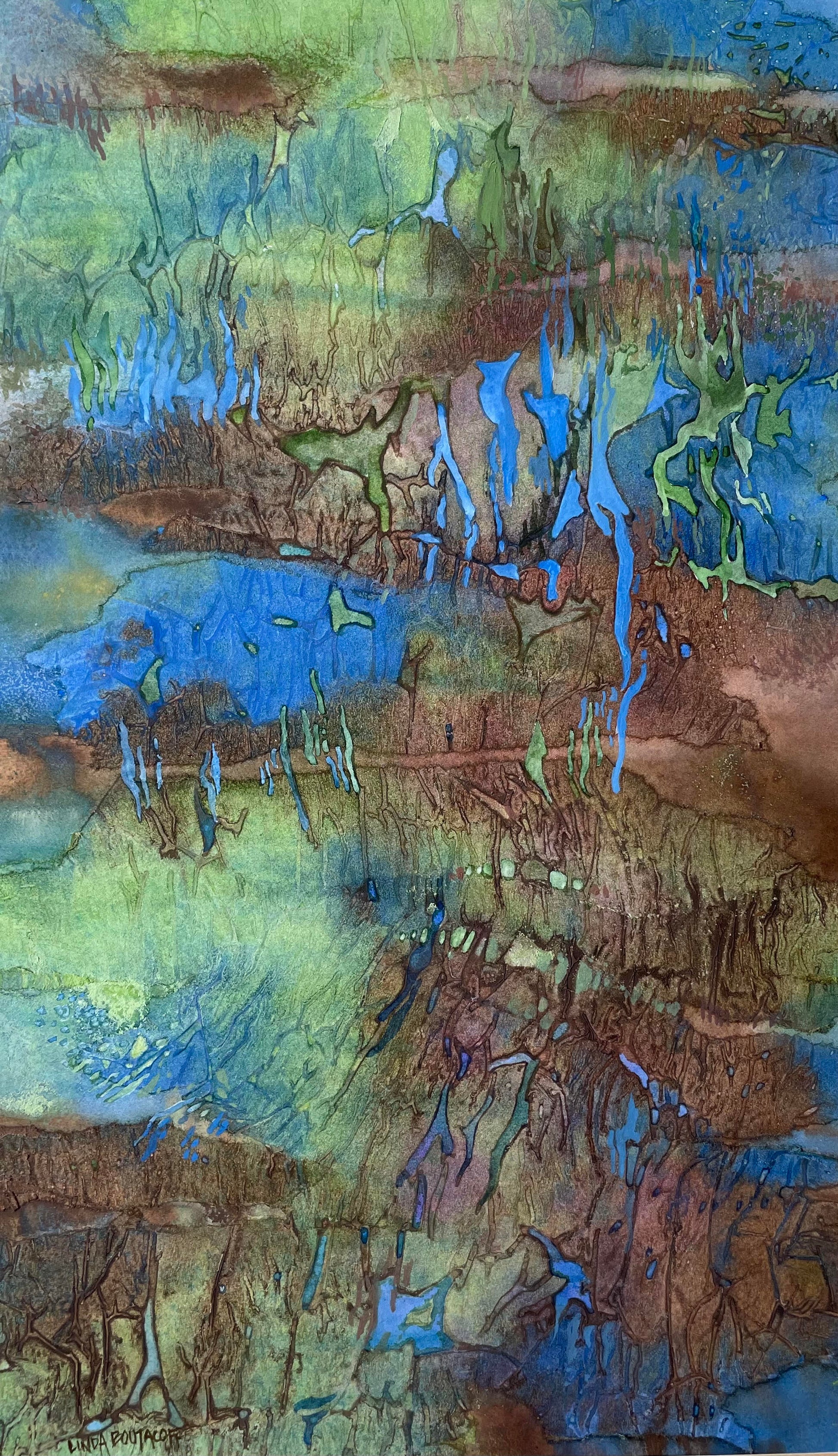 - Aerial view in spring as water begins to flow and vegetation turns vivid green
