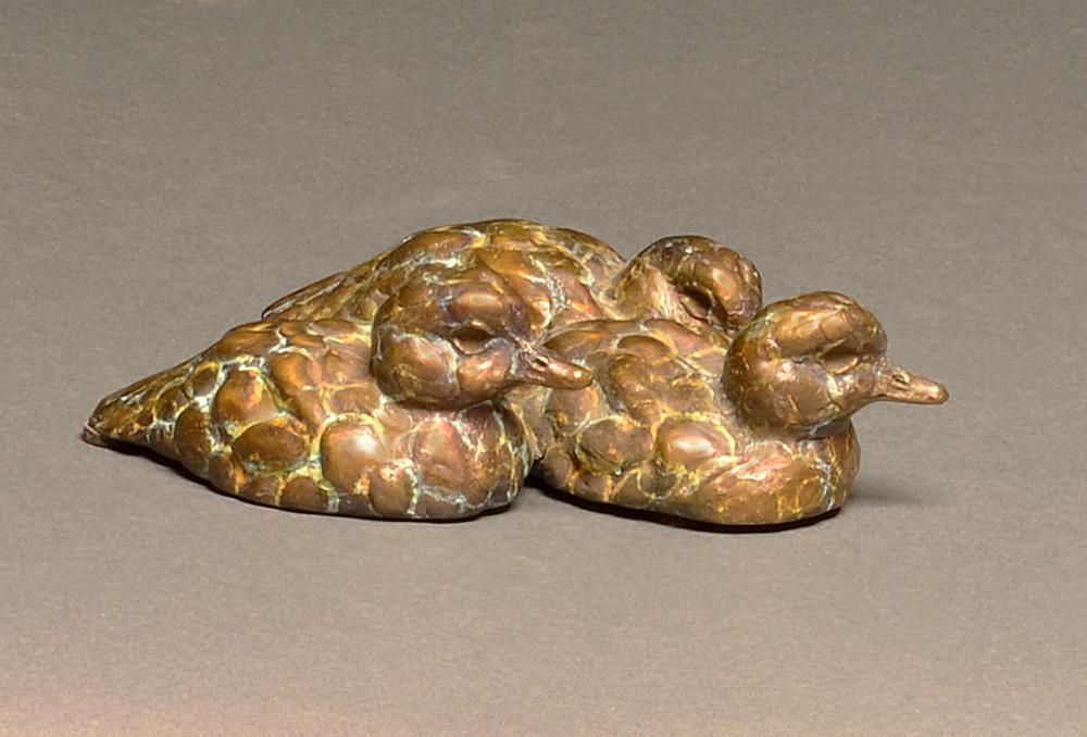 Bronze Baby Wood Duck Trio Sculpture