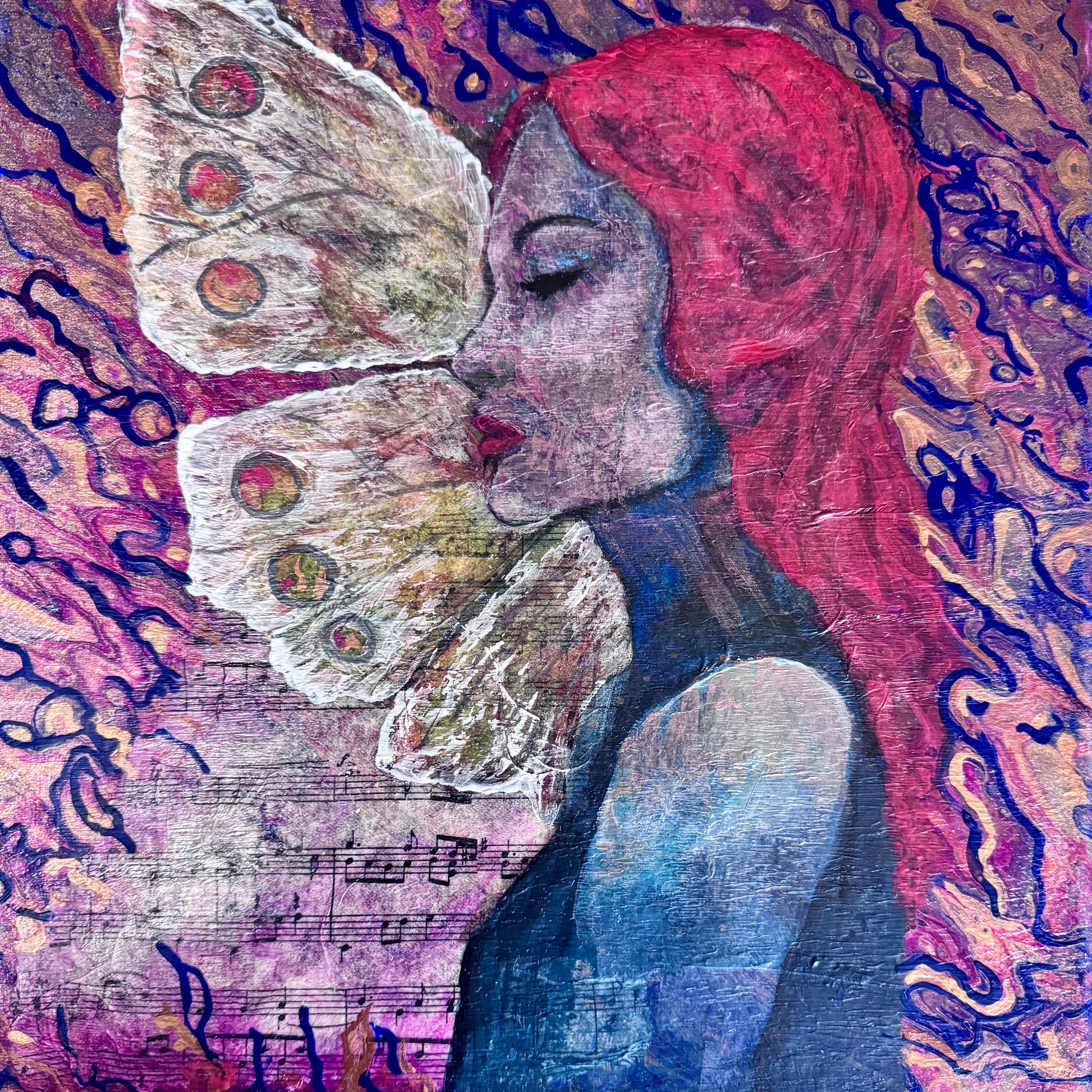 - 12x12 Mixed Media portrait using collage, acrylic and watercolor, ready to hang